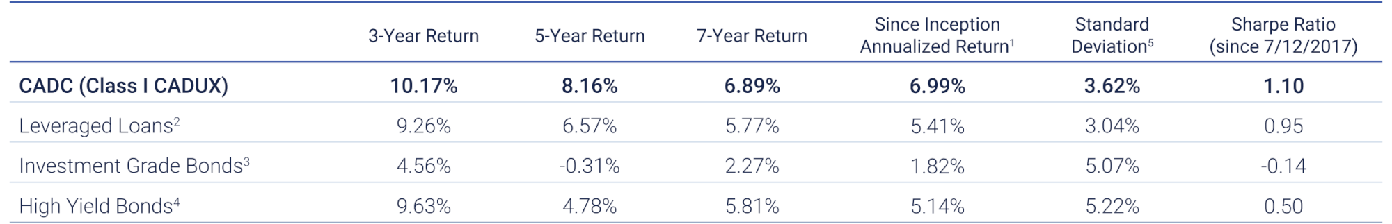 A portion of distributions may be a direct result of expense support payments provided by CION Ares Management, LLC (CAM), which are subject to repayment by CADC within three years. The purpose of this arrangement is to ensure that CADC bears an appropriate level of expenses. Any such distributions may not be entirely based on investment performance and can only be sustained if positive investment performance is achieved in future periods and/or CAM continues to make such expense support payments. Future repayments will reduce cash otherwise potentially available for distributions. There can be no assurance that such performance will be achieved in order to sustain these distributions. CAM has no obligation to provide expense support payments in future periods.